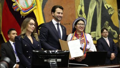 Instalación de la nueva Asamblea Nacional 2025, ADN logra la mayoría en el Legislativo.De izquierda a derecha, Mishel Mancheno, primera…