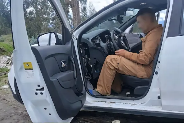 El automóvil, abandonado en medio del camino, mostraba signos evidentes de desmantelamiento, lo que alertó de inmediato a los habitantes del sector rural cercano.