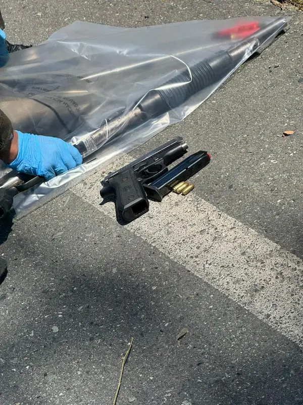 Producto del hecho ilícito, tenemos los siguientes indicios: 4 armas de fuego, un vehículo reportado como robado y tres celulares, los cuales tenían en su poder