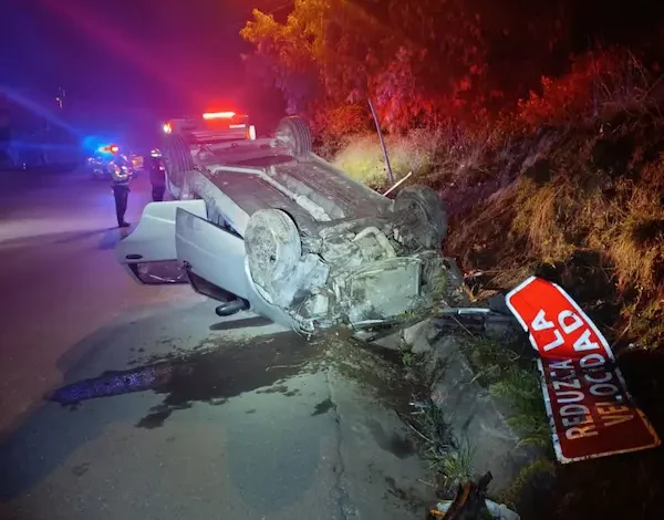 Cuando un automóvil sufrió un volcamiento en la vía San Andrés–Guano, a la altura del sector Club de Campo, cerca de la Unidad Educativa Pérez Guerrero.