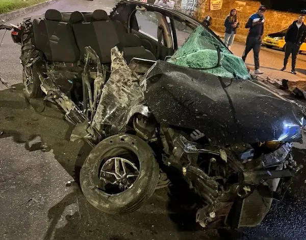 El impacto fue tan violento que el automóvil quedó completamente destrozado.
