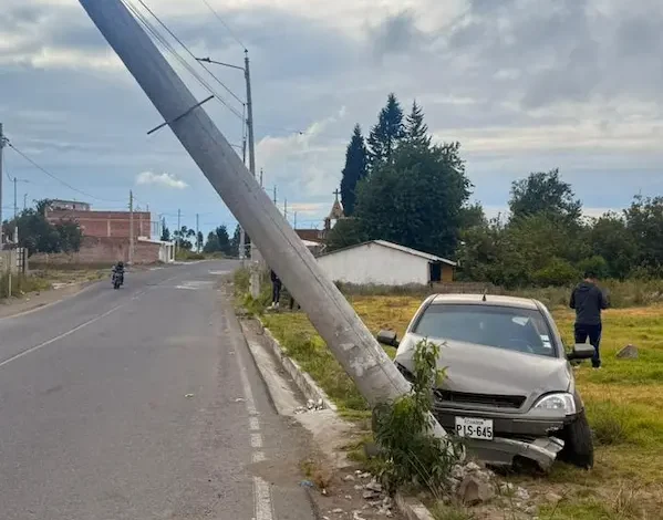 Según el reporte policial, el siniestro se originó por la pérdida de carril de circulación, lo que provocó que el vehículo se estrellara contra un objeto fijo, específicamente un poste perteneciente a la Empresa Eléctrica Riobamba S.A. (EERSA), ocasionando daños materiales de consideración.