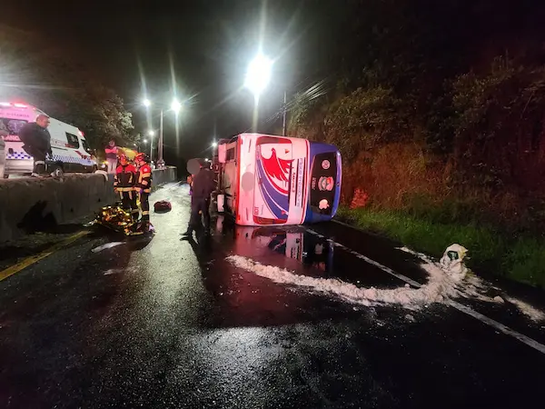 Un grave accidente de tránsito en Quito se registró la madrugada de este martes 27 de enero, cuando un bus interprovincial se volcó en la avenida Simón Bolívar.