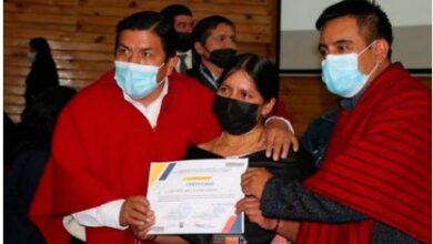 Marcelo Paucar y Rodrigo Coro hicieron la entrega de certificados a destacados docentes bilingües.Alausí/ En el Auditorio del Gobierno Autónomo…