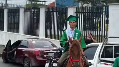 Un estudiante llegó a su graduación montado a caballo en Quevedo, sorprendiendo a todos con su original entrada y celebrando…