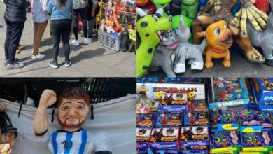 Entre risas y regateos los visitantes adquieren los años viejos que se exhiben en la ‘Feria de los Monigotes’ ubicada…