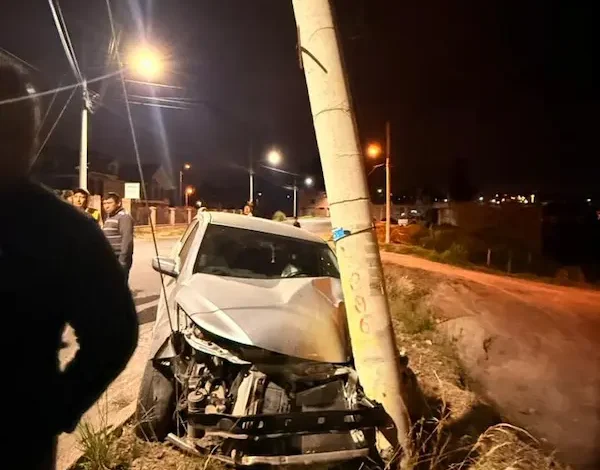 Accidente de tránsito univehicular se registró en la vía Santa Teresita, en Guano. Un vehículo chocó contra un poste y causó daños materiales, sin dejar personas heridas ni fallecidas.