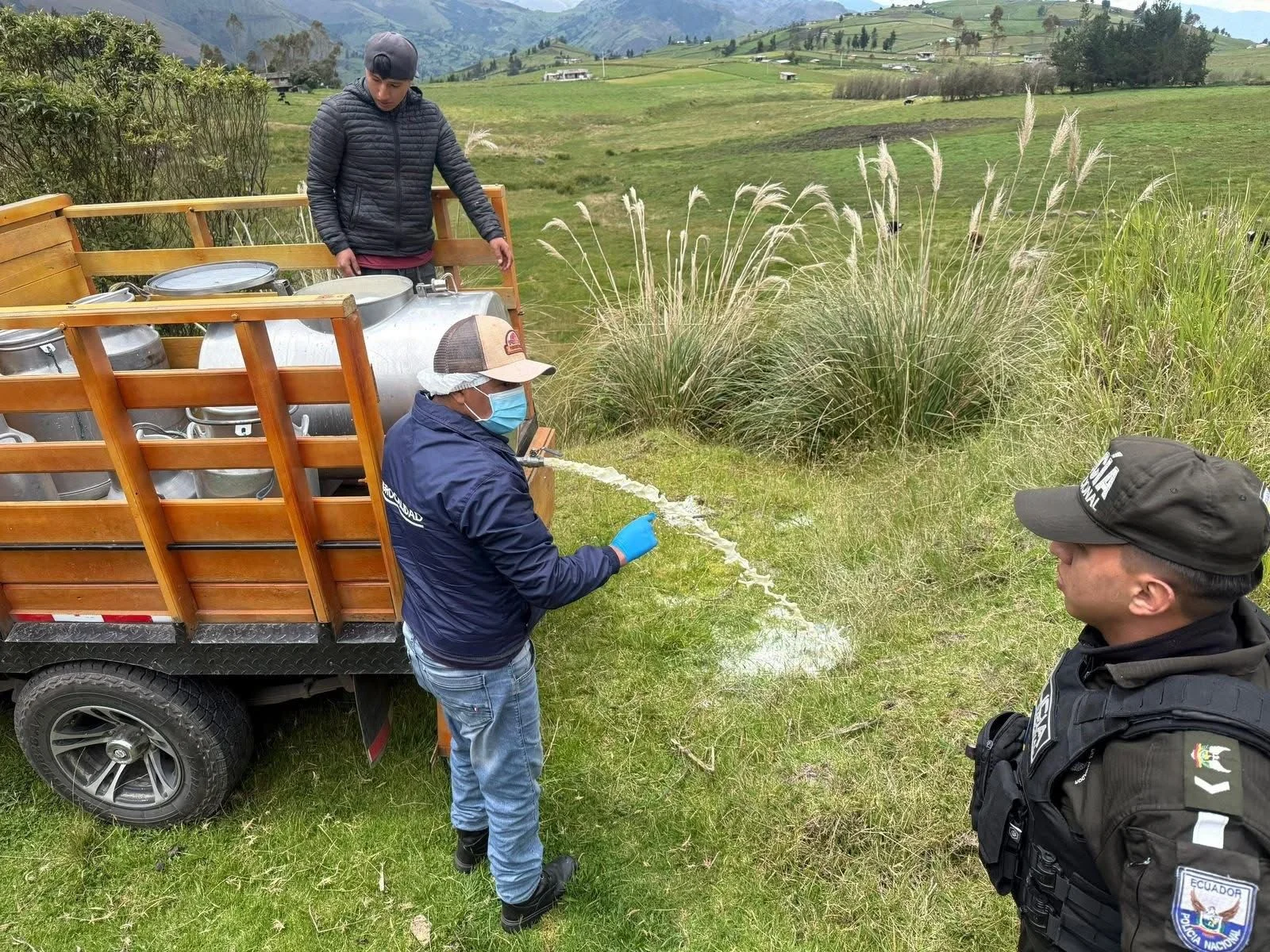 Decomisan 200 litros de leche con antibióticos en Guaranda; 9 vehículos fueron inspeccionados y se revisaron 7.500 litros.