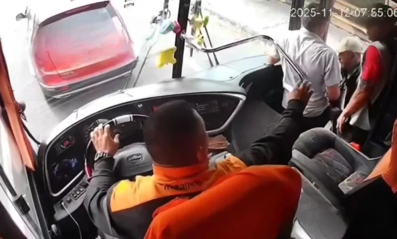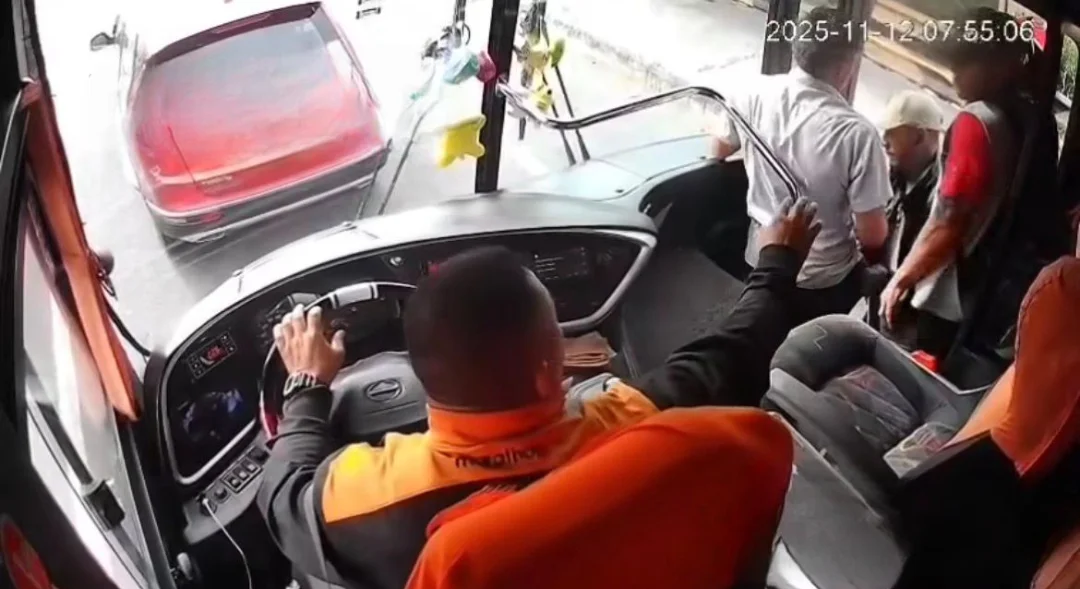Según un video que circula en redes sociales, los sujetos pasan frente al bus, pero al ver que este se detuvo en un semáforo, regresaron y subieron con amenazas hacia el chofer y el oficial.