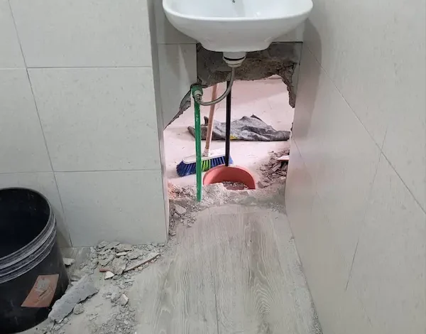Una pared rota en el área del baño fue el acceso a este local.
