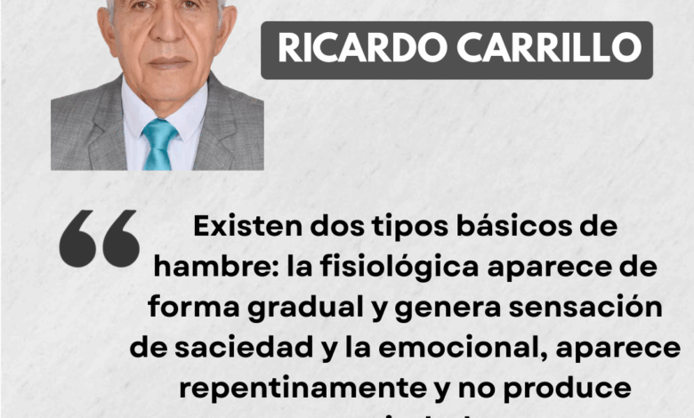 Existen dos tipos básicos de hambre: la fisiológica aparece de forma gradual y genera sensación de saciedad y la emocional, aparece repentinamente y no produce saciedad.