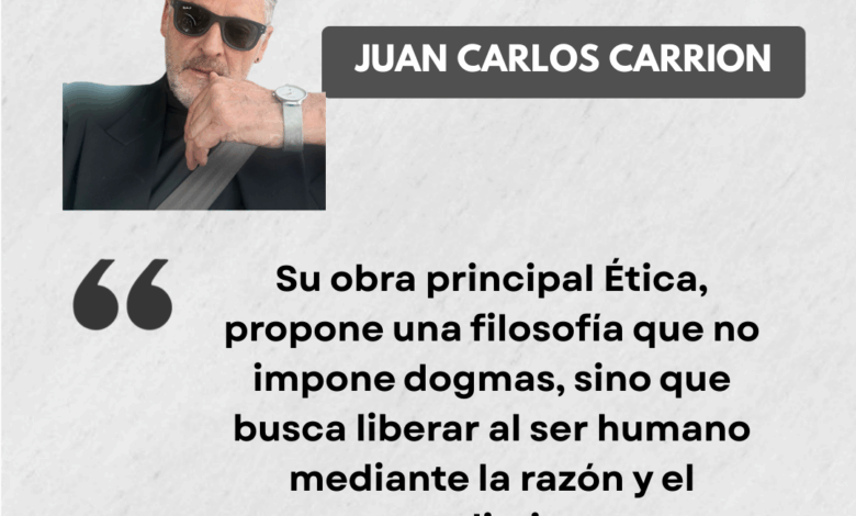 Sostuvo que las pasiones humanas como el miedo, odio, tristeza provienen de la ignorancia, y que el conocimiento conduce a la alegría, la paz interior y la ética auténtica. Vivió con austeridad, rechazó honores y poder, y fue excomulgado por sus ideas. Su obra principal Ética, propone una filosofía que no impone dogmas, sino que busca liberar al ser humano mediante la razón y el entendimiento.