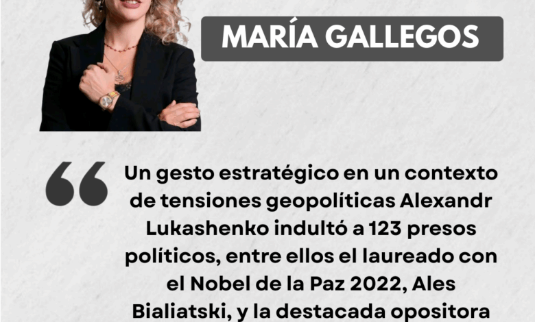 Un gesto estratégico en un contexto de tensiones geopolíticas Alexandr Lukashenko indultó a 123 presos políticos, entre ellos el laureado con el Nobel de la Paz 2022, Ales Bialiatski, y la destacada opositora Maria Kolesnikova. Esta medida, confirmada por la agencia estatal Belta y grupos de Derechos Humanos como Viana; son el resultado de negociaciones que provienen de EE.UU.