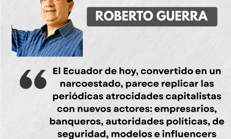 El Ecuador de hoy, convertido en un narcoestado, parece replicar las periódicas atrocidades capitalistas con nuevos actores: empresarios, banqueros, autoridades políticas, de seguridad, modelos e influencers aupados en medios de comunicación, cuya desenfrenada codicia, no les permite entender el terrible daño, a los consumidores de droga, a los sitios de producción, procesamiento, transporte y distribución, convertidos en escenarios de guerra, de violencia desbordada, por la que hoy nuestro país transita.