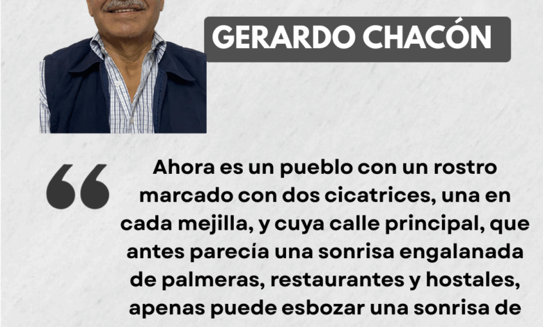 Ahora es un pueblo con un rostro marcado con dos cicatrices, una en cada mejilla, y cuya calle principal, que antes parecía una sonrisa engalanada de palmeras, restaurantes y hostales, apenas puede esbozar una sonrisa de tanta pena acumulada. En el rincón de su comisura, en el edificio municipal, se han reunido algunas autoridades para velar la tragedia; pero solo se escucha que siguen en desacuerdo sobre cómo salvar este cantón querido y evitar nuevos viacrucis. Ojalá San Pedro, que mira impertérrito el desastre desde su torre en medio del pueblo, no les niegue tres veces y ayude a encontrar un salvación antes de semana santa.