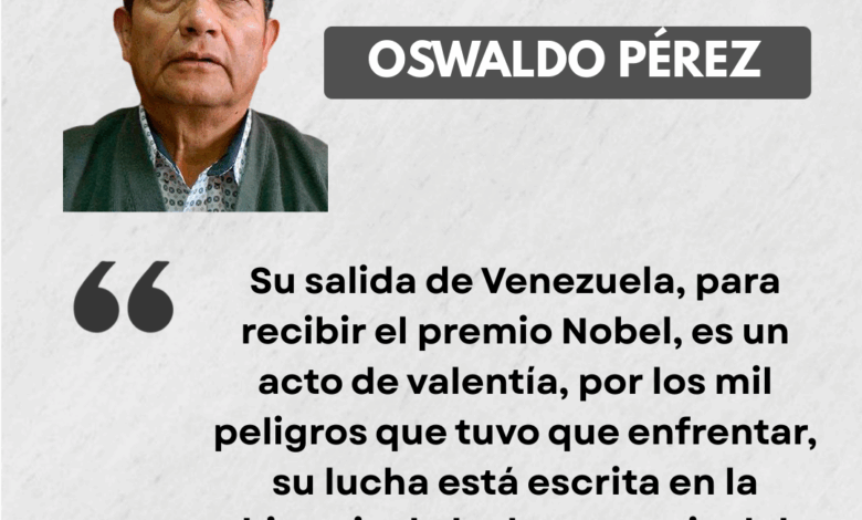 Su salida de Venezuela, para recibir el premio Nobel, es un acto de valentía, por los mil peligros que tuvo que enfrentar, su lucha está escrita en la historia de la democracia del mundo.