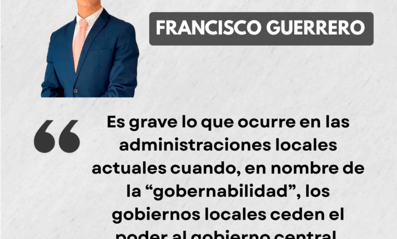 Es grave lo que ocurre en las administraciones locales actuales cuando, en nombre de la “gobernabilidad”, los gobiernos locales ceden el poder al gobierno central. Los gobiernos locales están justamente para lo contrario: las verdaderas políticas públicas nacen “desde abajo”, donde la ciudadanía propone, el gobierno local regula y ejecuta, y el gobierno central simplemente garantiza las condiciones para que cada entorno se desarrolle según sus propias necesidades.