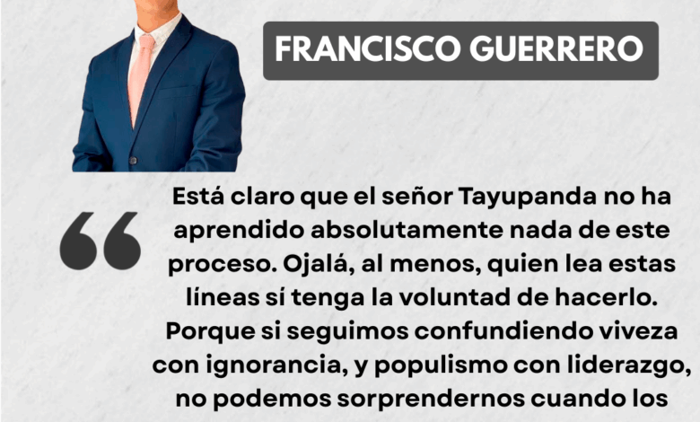 Está claro que el señor Tayupanda no ha aprendido absolutamente nada de este proceso. Ojalá, al menos, quien lea estas líneas sí tenga la voluntad de hacerlo. Porque si seguimos confundiendo viveza con ignorancia, y populismo con liderazgo, no podemos sorprendernos cuando los errores vuelven a caer, una y otra vez, por su propio peso.