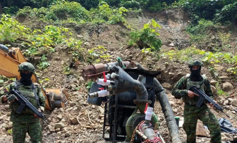 Ejército desarticula 4 campos de minería ilegal en Méndez, lo que representa una afectación económica aproximada de USD 200 mil.