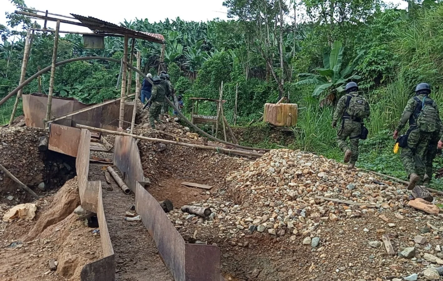 Ejército destruyó 12 bocaminas de minería ilegal en La Maná.