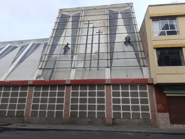 La fachada de la Iglesia de Santa Rosa en Riobamba es remodelada, requieren recursos