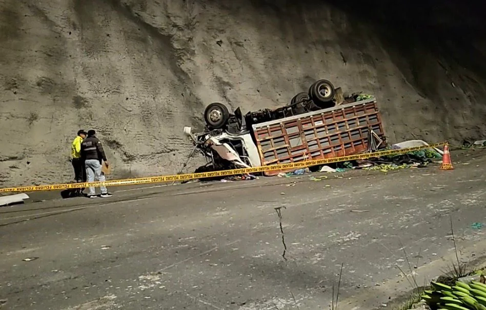 Según información preliminar, el siniestro involucró a un camión que se movilizaba desde Echeandía con destino a Machachi, transportando carga de verde.