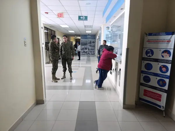 afirmó: “La atención en el hospital es para dependientes militares, familiares y personal civil en casos de emergencia”.