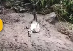 Imbabura enfrenta graves problemas por deslizamientos y derrumbes por fuertes lluvias. Y tienen que pasar a sus animalitos por cuerdas