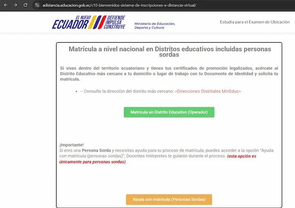 Las personas sordas ecuatorianas que residan dentro o fuera del país podrán acceder al servicio “Ayuda con matrícula o examen de ubicación”.