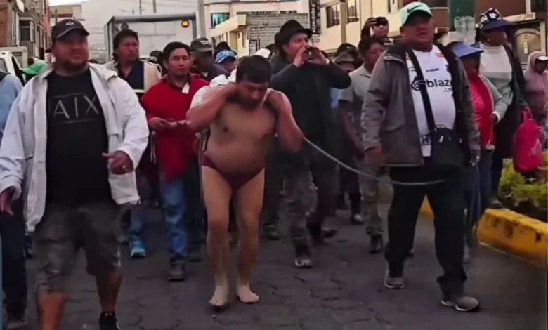 En horas de la noche, en San Andrés de Pilaló, se aplicó la justicia indígena con castigos tradicionales, entre ellos agua y ortiga, buscando corregir la falta y restablecer el equilibrio comunitario.