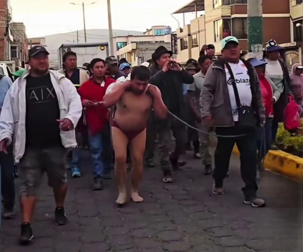 Durante el trayecto cargó un costal de piedras como sanción simbólica y, visiblemente nervioso, pidió disculpas al pueblo.