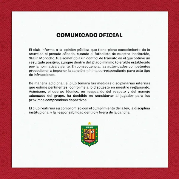 Además, se conoció que la directiva no tendría previsto renovar el contrato de Morocho, el cual finaliza al término de la LigaPro temporada 2025.