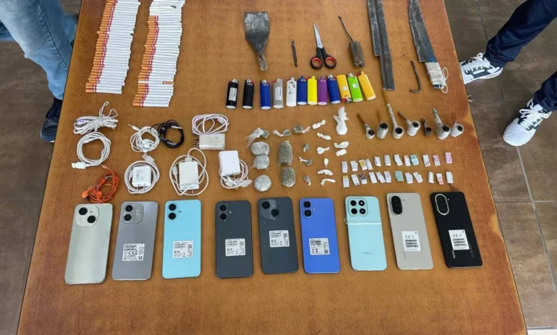 Además, 12 cargadores, 12 auriculares, 9 armas corto punzantes, 1160 cigarrillos y varios artículos prohibidos.