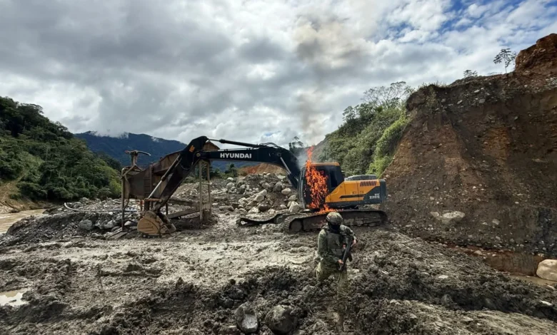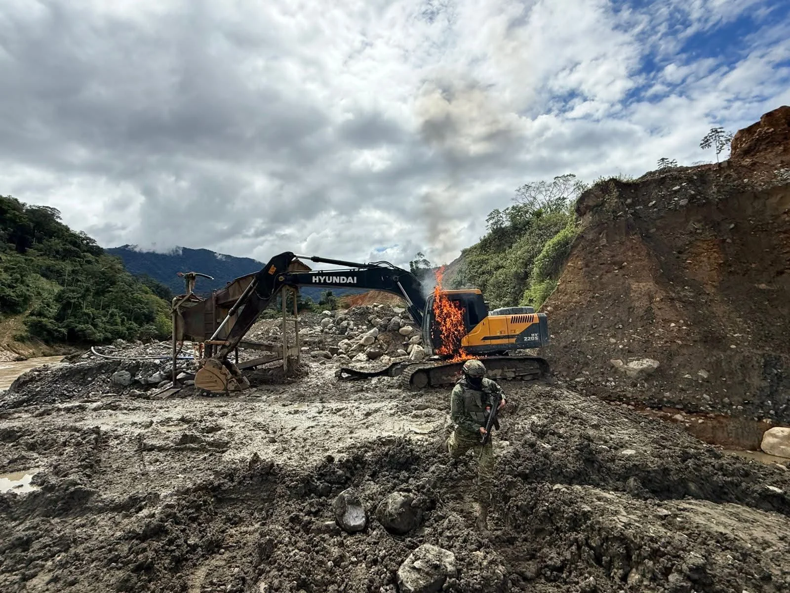 Durante la intervención, el personal militar inhabilitó y destruyó maquinaria empleada en la extracción ilícita de minerales.