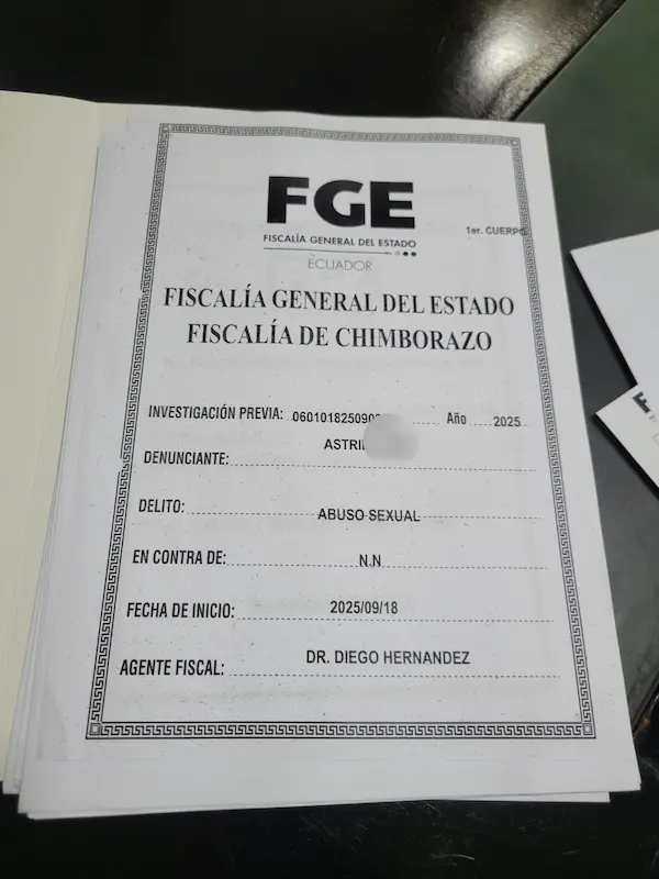 En un mes no se han dado diligencias, solo una muy importante dentro del expedientillo fiscal, que es la pericia ginecológica, donde el perito de Fiscalía, en su conclusión dice que hay laceraciones recientes, entonces con ese informe debían ya hacer algo, pero ni los protocolos del Ministerio de Educación, en este caso el Distrito Riobamba Chambo, se han dado