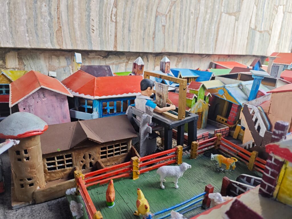 El pesebre representa tanto escenas bíblicas como la vida cotidiana de la región: mercados, vendedores de mote, paisajes rurales y referencias a Riobamba y el volcán Chimborazo.