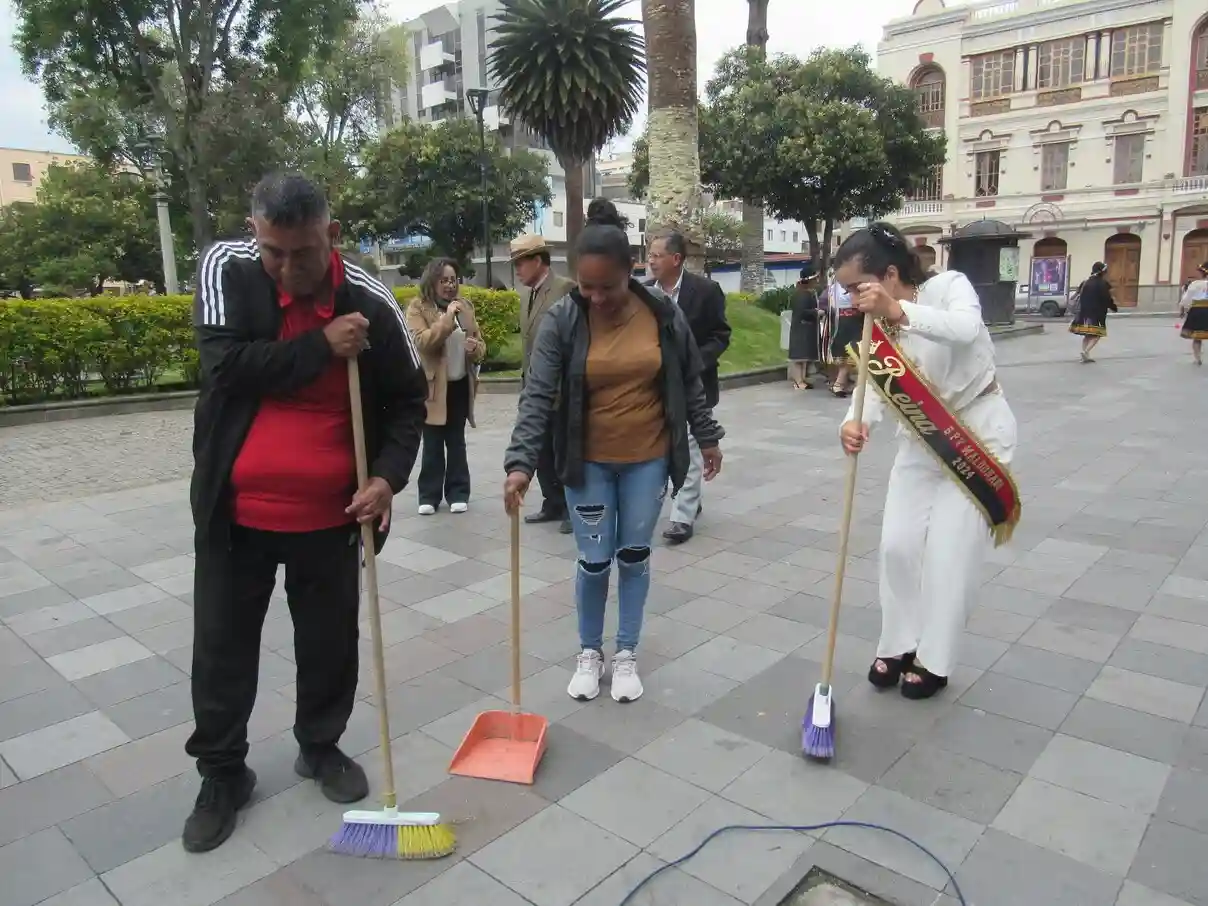 Para empezar la minga del sábado 22 de febrero tanto el rector Rubén Darío Orna, como la reina Melani Calvopiña dieron el primer escobazo.