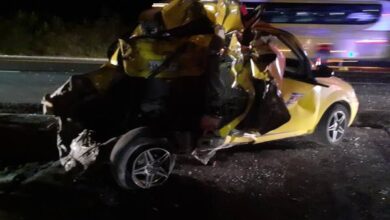 Taxi destrozado por choque en la panamericana norte, sector San Andrés
