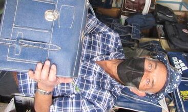 Mochilas hechas a mano de los años 70 vende «Don Luis» en Riobamba