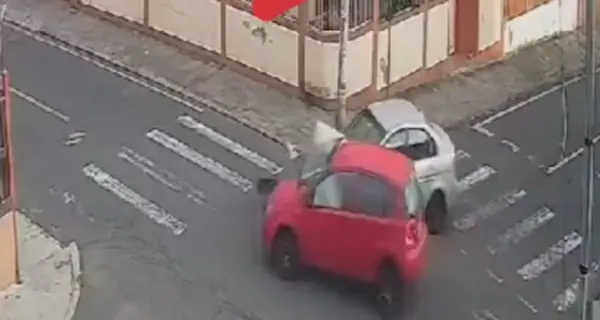 Según información preliminar, el conductor de un Hyundai Accent no respetó el disco PARE, impactando violentamente contra un Chevrolet Aveo.