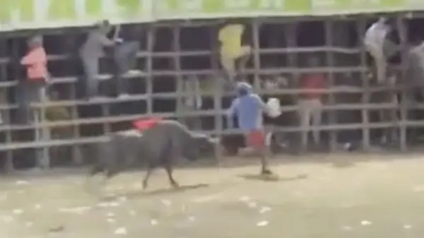 Las imágenes difundidas muestran cómo el toro persigue al hombre dentro del recinto, mientras este intenta escapar corriendo.