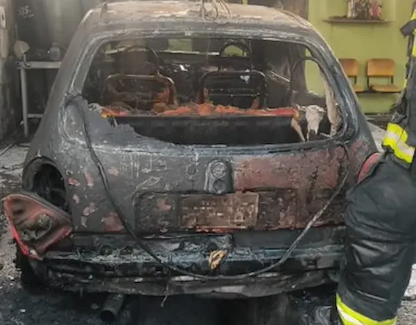 El incendio consumió la parte interna del vehículo, provocando la explosión de dos ventanas y la pérdida de dos neumáticos.
