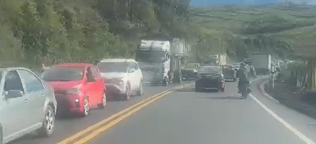 El tráfico colapsó la vía Ambato–Riobamba, con paralizaciones de hasta 45 minutos por carriles incompletos.